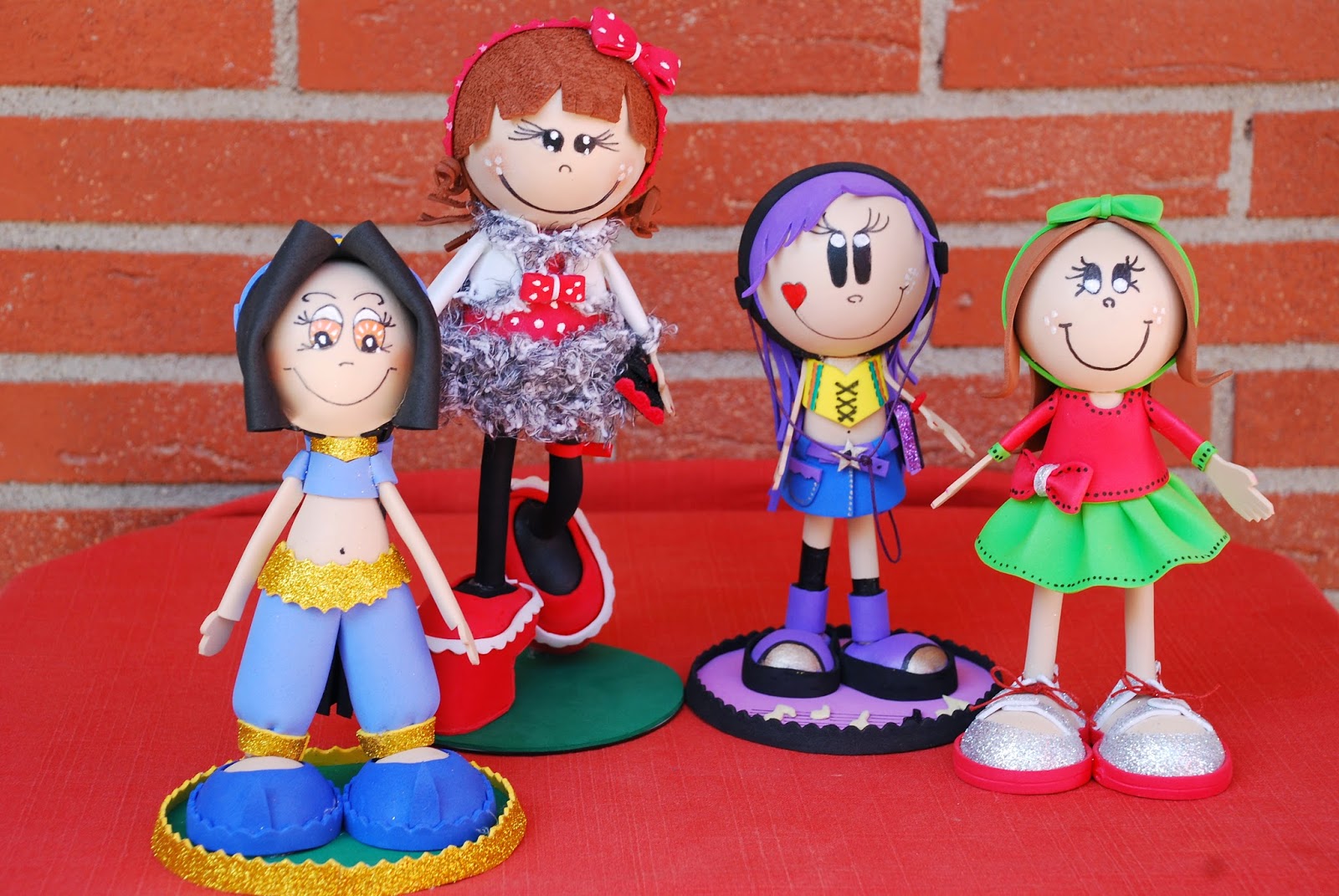 Y aquí tenemos más Fofuchas , cada una en su estilo, la roquera , la niña, la sexy.. en fin, seguiremos mi madre y yo haciendo Fofuchas, no nos cansamos de hacerlas porque nos encantan, personalizarlas es lo mejor.